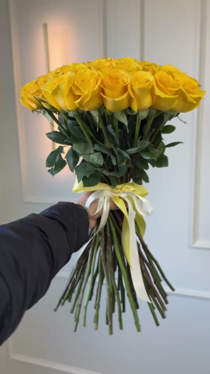 Brighten someone's day with our stunning yellow flower bouquets — Flores Amarillas — from Rama Floral Design. Yellow roses symbolize friendship, joy, and new beginnings, making them the perfect gift for birthdays, celebrations, or to simply bring sunshine into someone's life. Our yellow rose arrangements are handcrafted with vibrant, fresh blooms and elegant presentation.