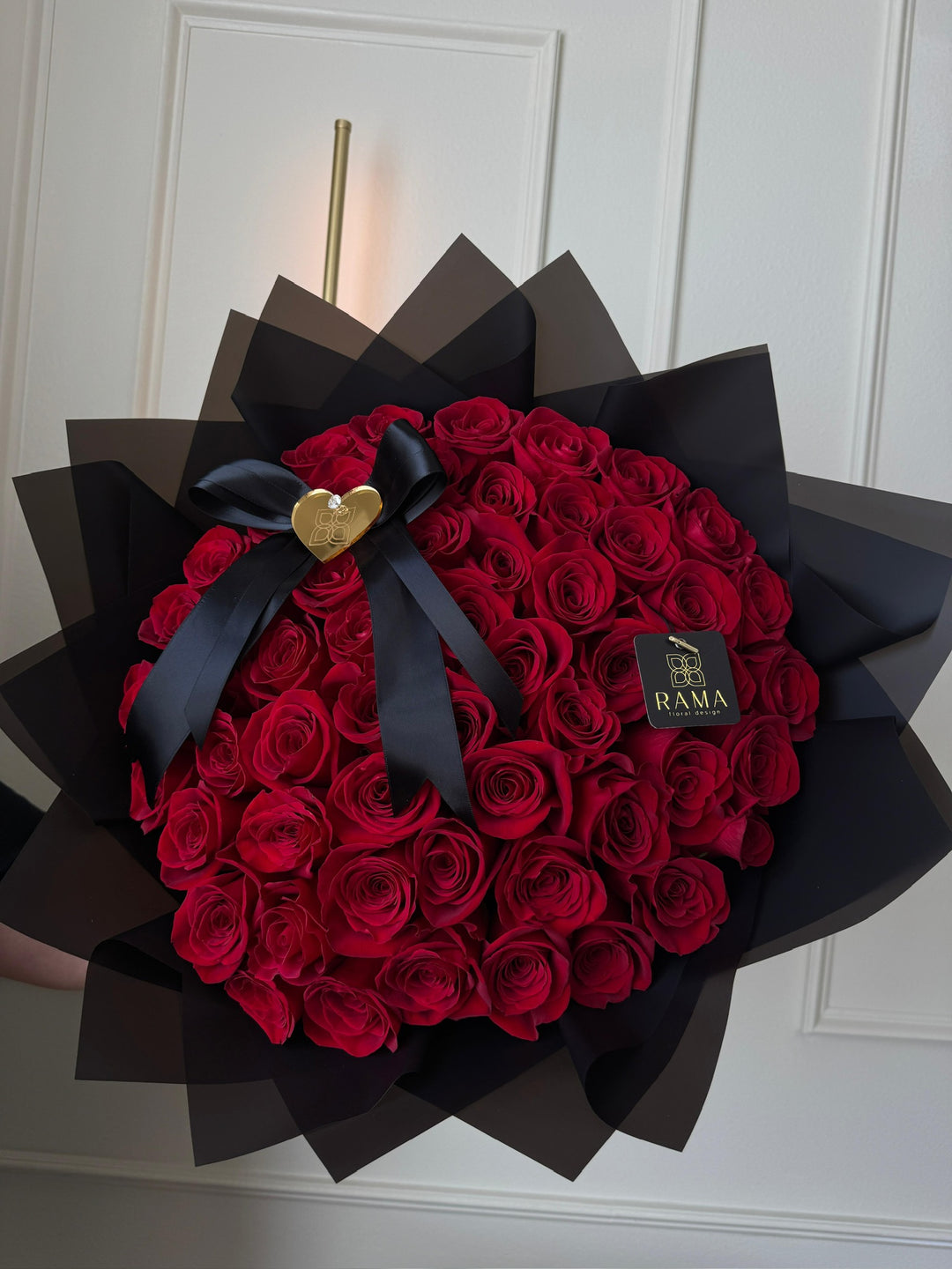 50 Red Roses Bouquet with Custom Banner – Black Wrapping